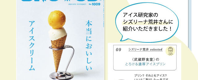 6月3日に発売された雑誌、BRUTUSに武蔵野食堂 「とろける濃厚アイスプリン」が掲載されました。 今月号は「本当においしいアイスクリーム」特集で、”プリン?それともアイス?いいとこ取りした一品 ”とアイス研究家のシズリーナ荒井さんにご紹介いただきました! そして、俳優高橋光臣さんの「…